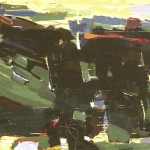 Es waren bereits einige großformatiger Leinwände bemalt, aber mehr als nur schöne Bilder waren es nicht. Nach Wochen der ergebnislosen Arbeit fand ich schließlich doch ins Innere und die Leinwände zeigten mir das Gelesene wider. Eine nun monatelange, beinahe schlaflose Malphase begann und die letzten Pinselstriche machte ich noch während des Verladens der Bilder in den LKW.